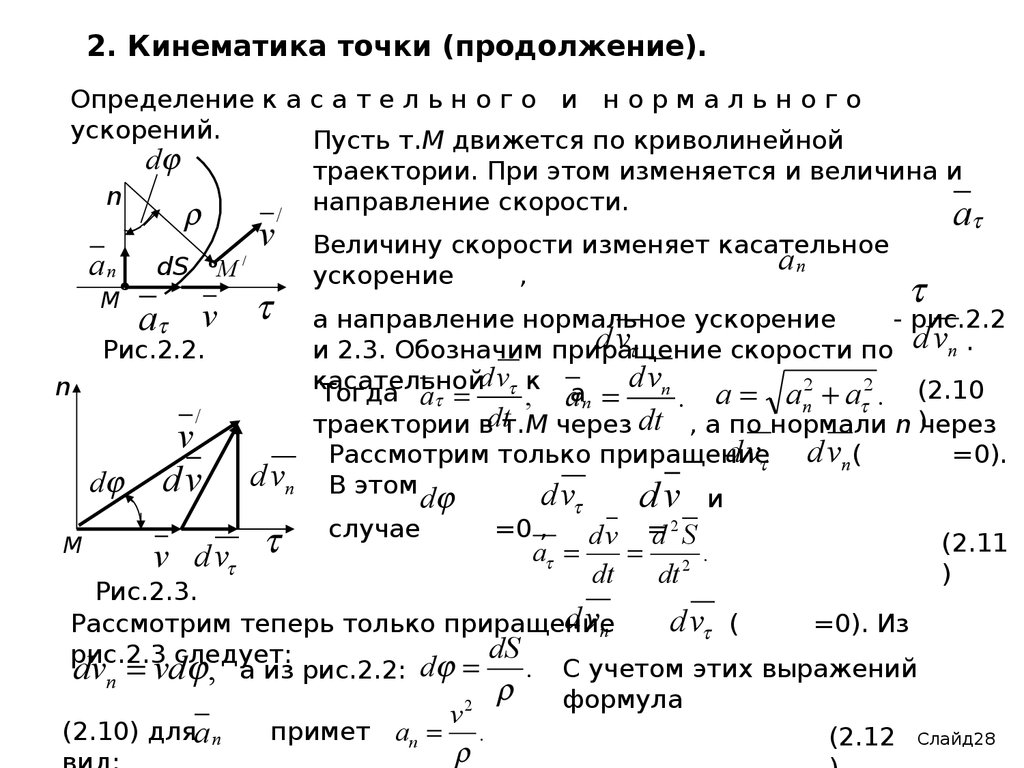 Нормальное же ускорение характеризует быстроту изменения скорости по направлению. Векторы нормального и тангенциального ускорения взаимно перпендикулярны, а вектор нормального ускорения направлен к центру окружности, по которой движется точка.