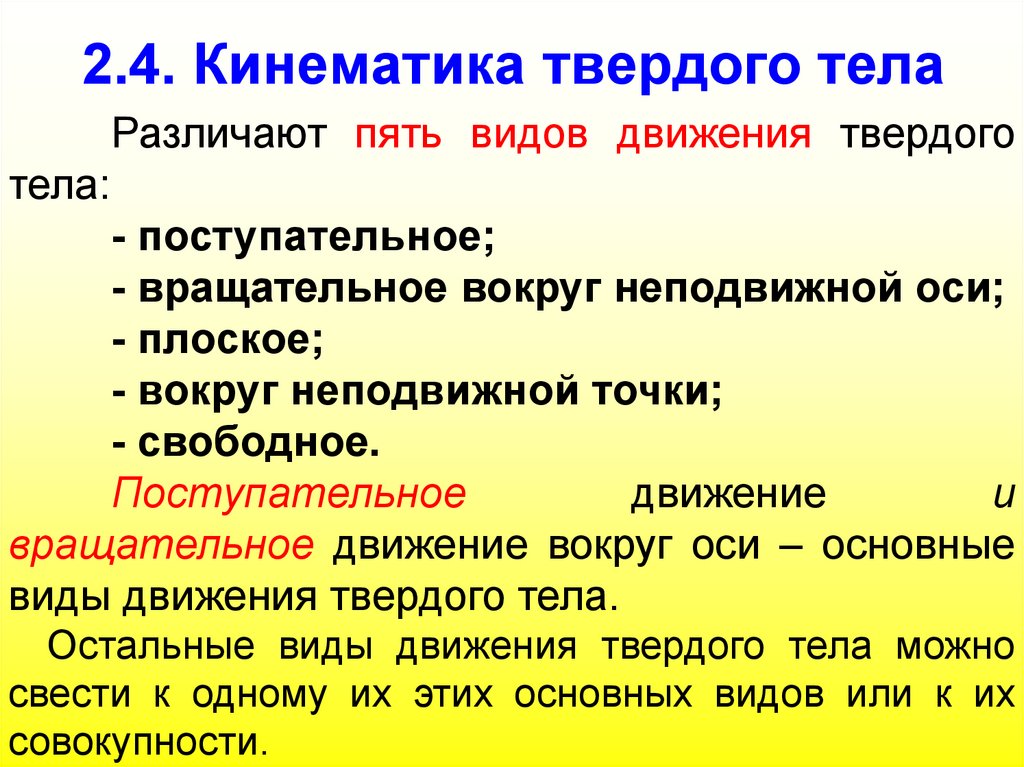Кинематика — это раздел теоретической механики, в котором изучается движение механических систем с геометрической точки зрения, без учета причин (сил), вызывающих это движение и изменение движения.
