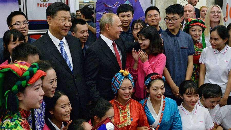 Председатель Си Цзиньпин и Президент России Владимир Путин во время посещения Всероссийского детского центра «Океан», 2018 г.