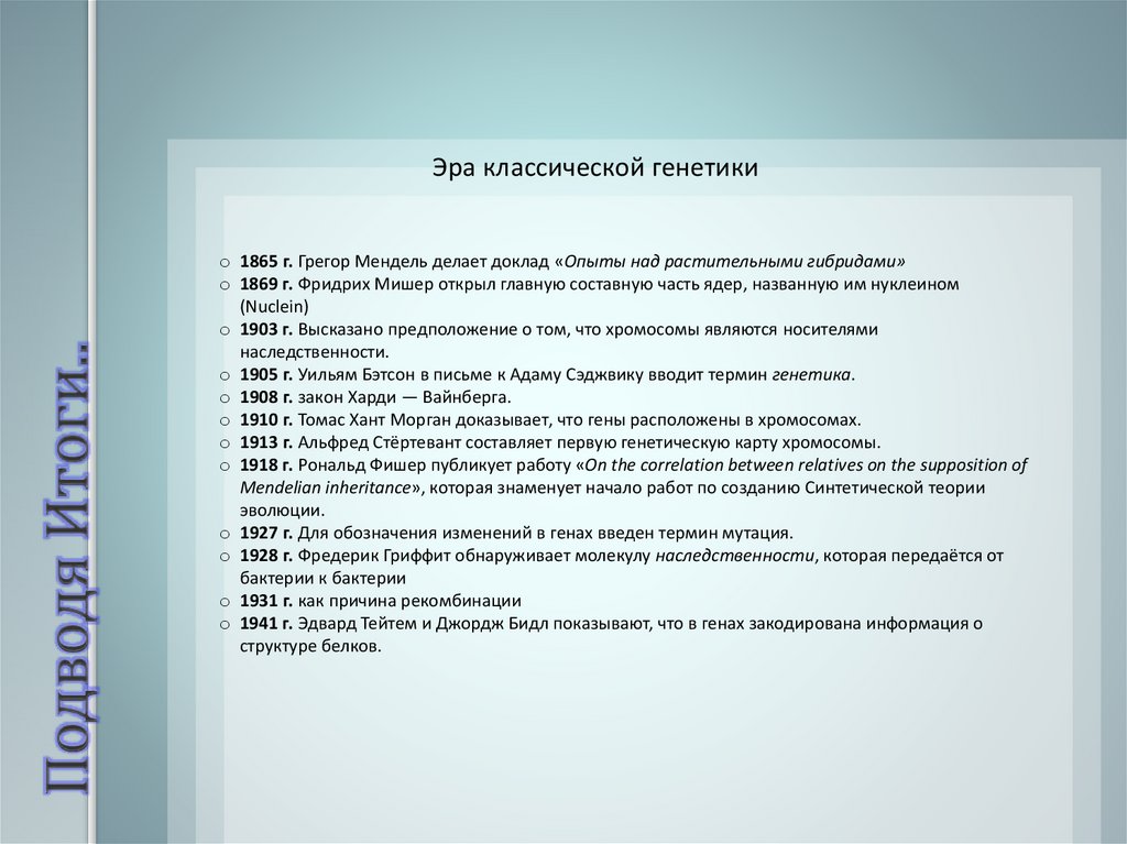 вопросов развития, эволюции и других биологических вопросов, выходящих за рамки законов передачи.Классическая генетика середины века,