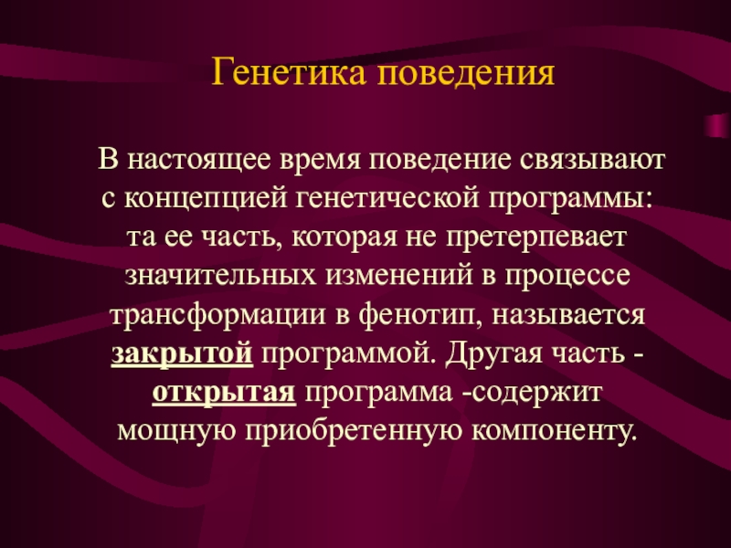 Хотя генетические особенности играют чрезвычайно большую роль в появлении, развитии, функционировании и поведении организмов, конечный результат (совокупность признаков и особых свойств организма) является сочетанием генетических факторов с условиями в которых происходит развитие организма. Например, наследственность играет значительную роль в формировании такого признака, как рост человека, однако, особенности питания и другие условия (например физическая активность, специфические упражнения и т.д.), могут в значительной степени модулировать указанный признак в зависимости от условий.