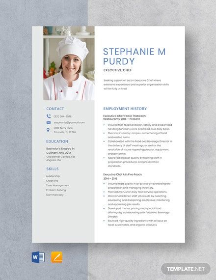 Лучший формат резюме шеф-повара Лучший формат резюме шеф-повара — в обратном хронологическом порядке. Первоначально он будет включать в себя ваш опыт работы, тем самым подчеркивая ваши обязанности и достижения в качестве шеф-повара.