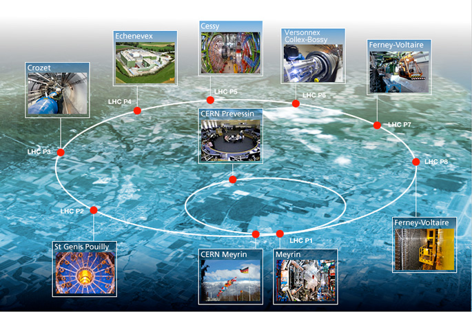 Что такое коллайдер (LHC)? Это самый амбициозный и мощный ускоритель частиц, построенный на сегодняшний день. Тысячи ученых из сотен стран сотрудничают и конкурируют друг с другом в поиске новых открытий. Для сбора данных экспериментов предусмотрены 6 участков, расположенные вдоль окружности коллайдера.