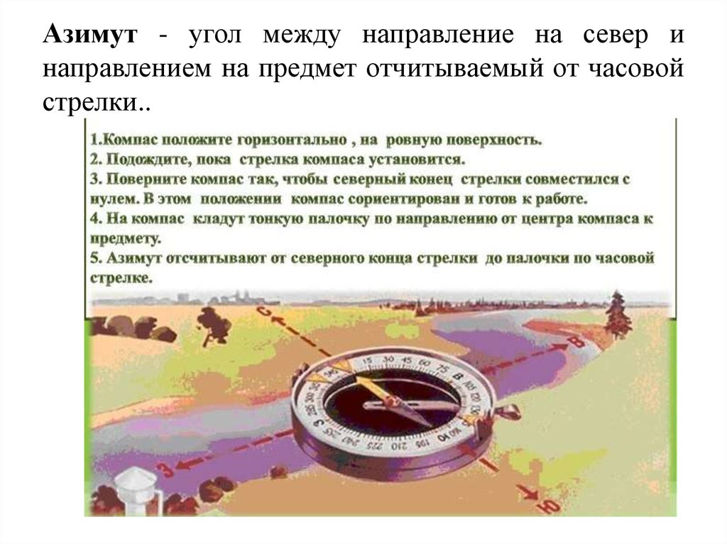 Любое направление может быть выражено как угол по отношению к направлению на север. Это направление под заданным углом и называется «азимутом». Держать азимут просто, если использовать ориентировочный компас с платформой. Вот набор простых советов: