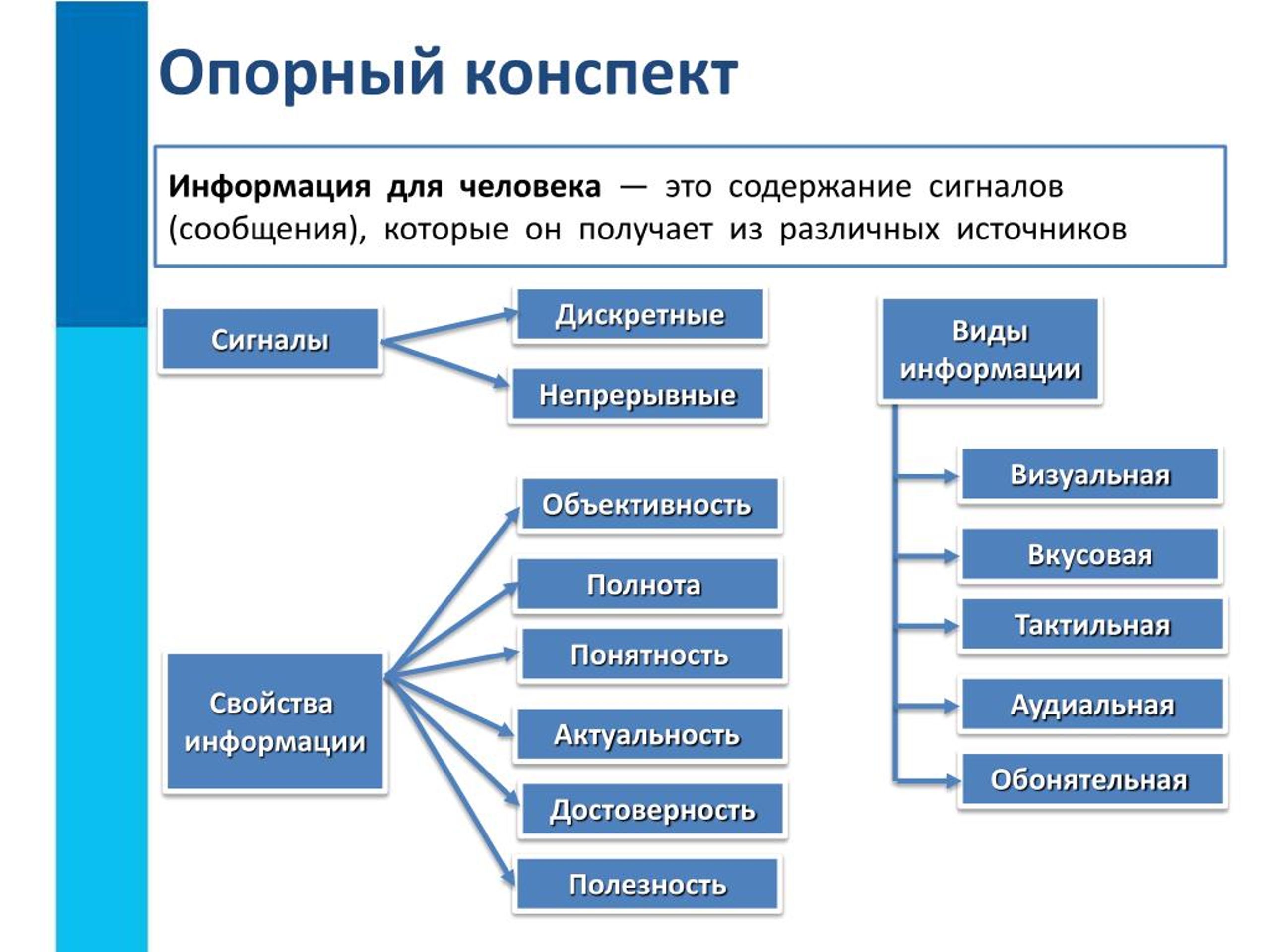 - Работа с учебником и листом опорных сигналов в домашних условиях. После двукратного объяснения (подробного и быстрого с опорой на графику) рекомендуется самостоятельно поработать с материалом в тот же день. Подготовка включает в себя чтение учебника и письменное воспроизведение опорного сигнала — сделать краткую версию ключевых моментов опорного конспекта.