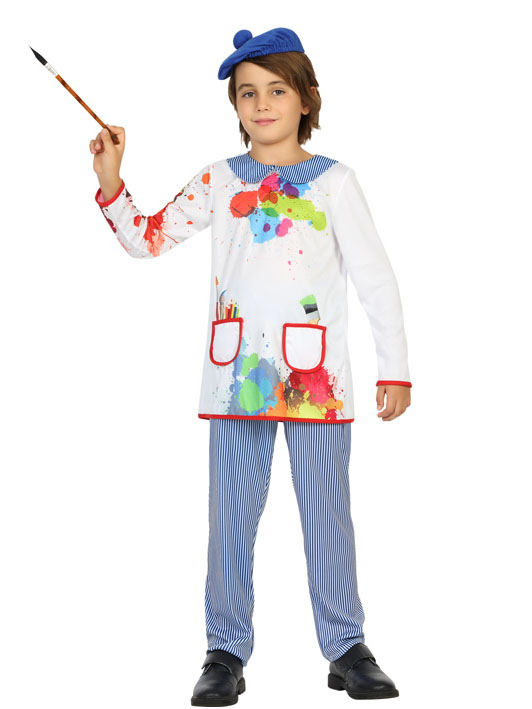 Как создать шедевр, не испачкавшись? Этот набор костюмов включает в себя куртку с принтом в виде брызг краски, войлочный берет, реквизитную палитру и кисть.