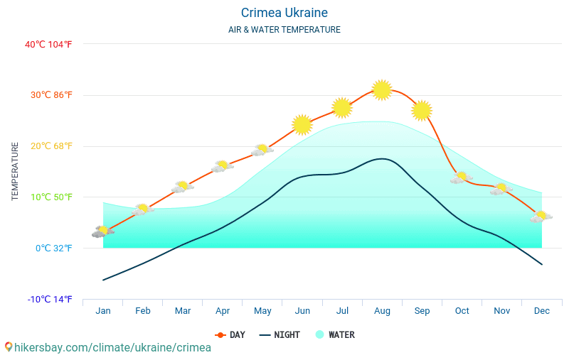 | Ялта | 8 | 7 | 8 | 9 | 13 | 18 | 21 | 23 | 21 | 17 | 15 | 10 |