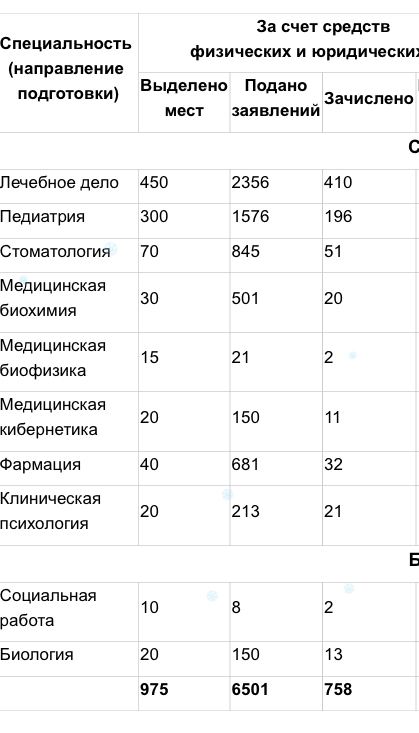 - Медицинские специальности: лечебное дело, педиатрия, стоматология.