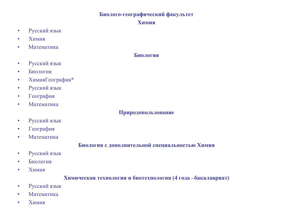 | В013 | Подготовка учителей биологии | Биология | Химия |