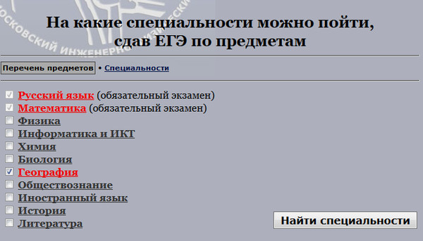 - Физика + Биология, Химия , Информатика, Геология, Математика ИЛИ География