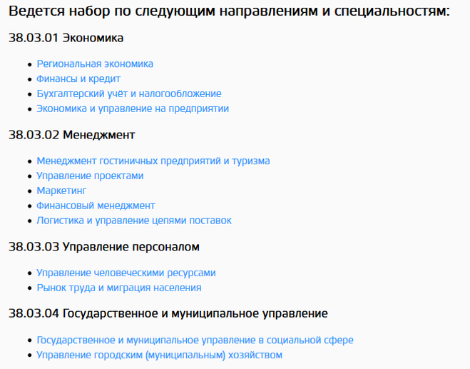 Это, прежде всего, направления, связанные с экономикой и правом.