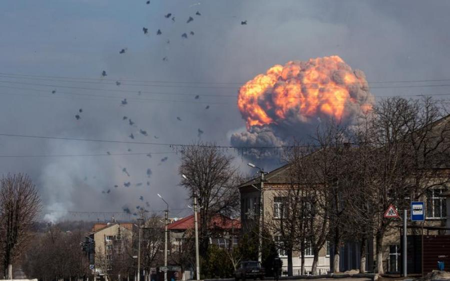 В районе города Балаклея, где горит и взрывается крупнейший в Украине склад боеприпасов, значительно повысился радиационный фон.