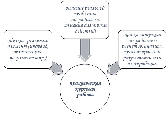 Практическая часть курсовой работы призвана продемонстрировать теоретические знания студента на практике. Таким образом студент не только проводит исследование согласно предмету, но и полностью описывает его процесс в практической части. Помимо самого исследования в практической части описываются методы, которые использовались в исследовании.
