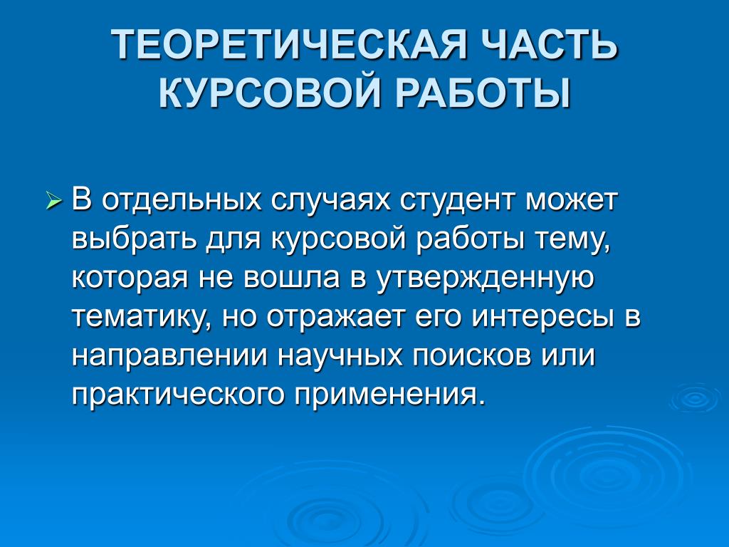 Курсовая работа же разбивается на несколько глав: теория и практика. Здесь уже проводится не только теоретическое исследование проблемы, но и определяется ее практическая значимость.