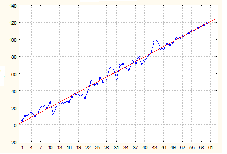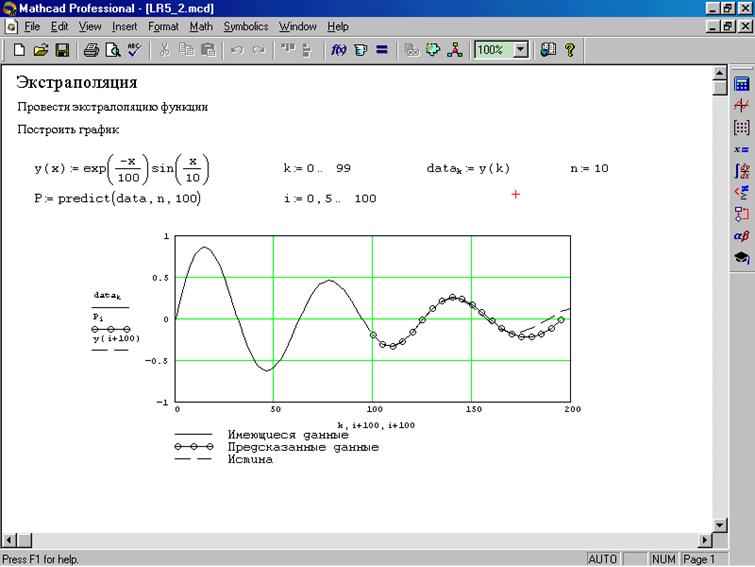- «Диаграмма с выборочными данными И интерполяцией (и экстраполяцией)» – синие маленькие точки (интерполяционная экстраполяция) должны хорошо совпадать с красными точками (выборочные данные).