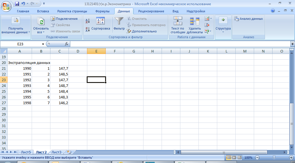 Чтобы заполнить ряд для линейного тренда, сделайте следующее: