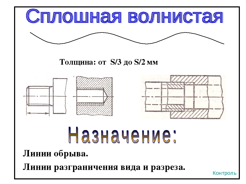 Местный разрез выделяется на виде сплошной волнистой линией (толщина от s/2 до s/3, линию проводят от руки), не совпадающей с какими-либо линиями изображения.