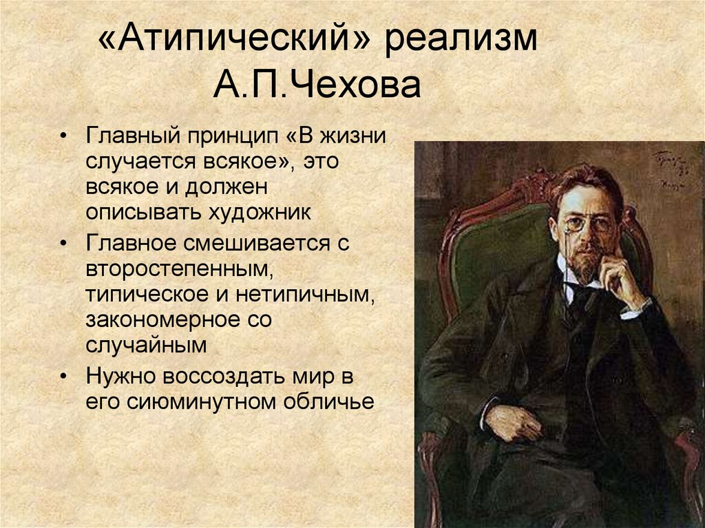 «Маленький человек» у Чехова стал не столько социальным типом, сколько психологическим. Драматург стремился показать, что такие зашоренные люди существуют в самых разных сословиях.