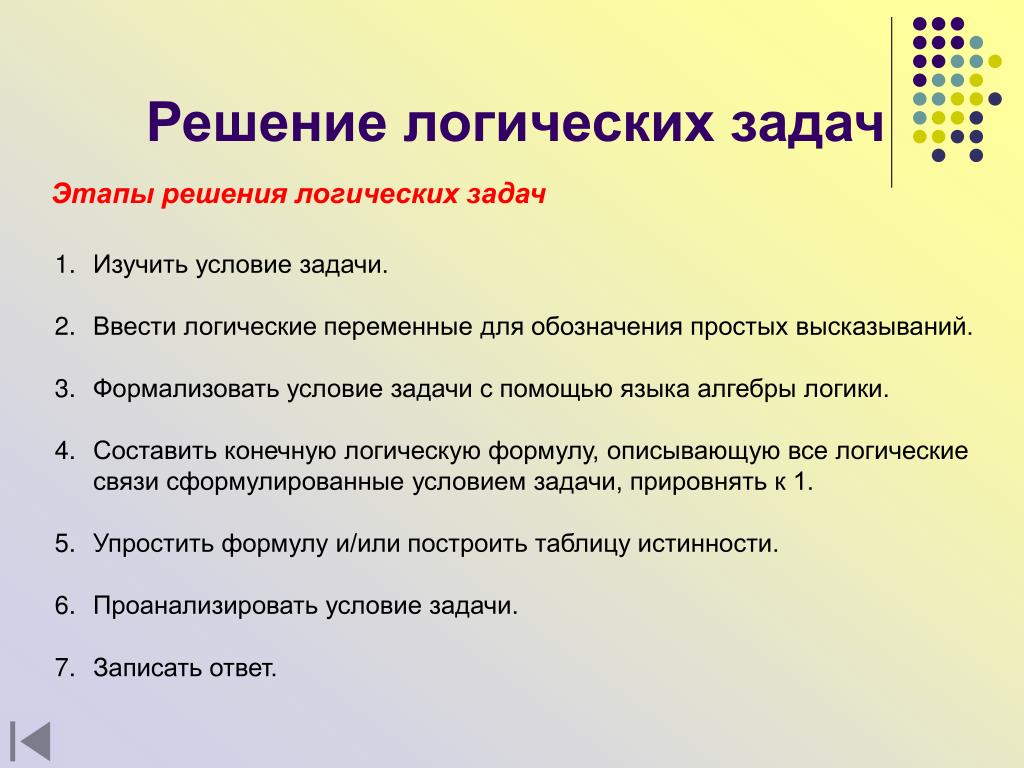 2.3.Методические рекомендации по изучению темы «Основы логики» в профильном курсе информатики