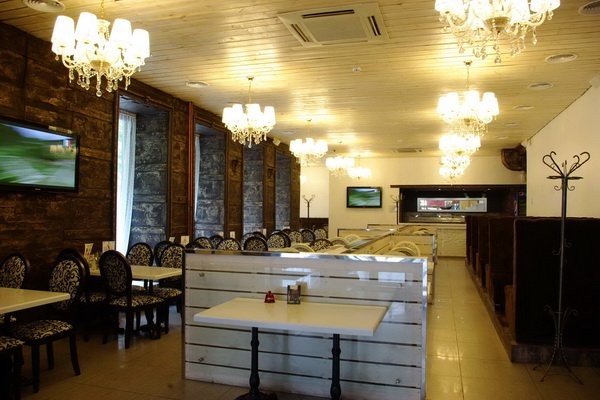 Красивый интерьер и приятная девушка при входе в заведение, которая встречает с улыбкой. Просторное помещение с большими окнами, через которые удобно рассматривать панораму города, наслаждаясь при этом вкусными блюдами.