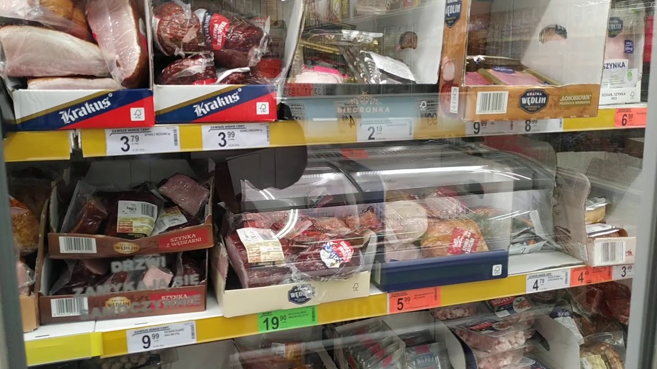 Ветчины, колбасы, сосиски — здесь все называется одним словом «wędliny». Сосисок выбор огромный, есть с разными добавками типа сыра. Также много колбасок для жарки, колбасок-закуски. Копченых колбас просто миллиард. В каждом магазине большой выбор «шинки», это ветчина.