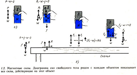- Что вызывает магнитную силу на левом магните? А правильный магнит?