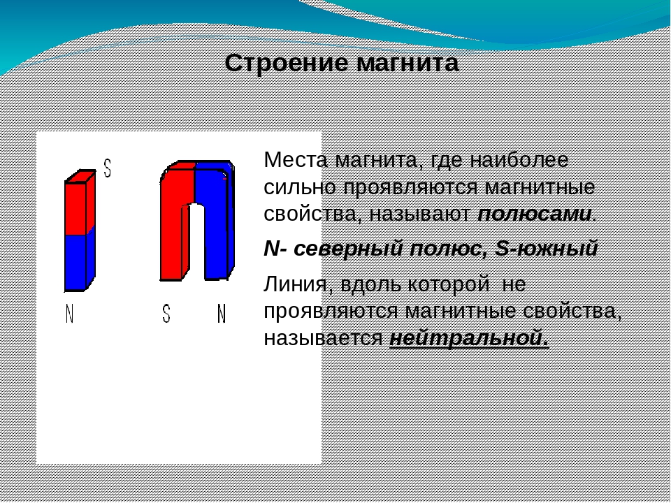 Любой объект, обладающий магнитными свойствами, называется магнитом. У каждого магнита есть две точки или полюса, где сосредоточена большая часть его силы; они обозначаются как полюс, ищущий север, или северный полюс, и полюс, ищущий юг, или южный полюс, потому что подвешенный магнит имеет тенденцию ориентироваться вдоль линии север-юг.