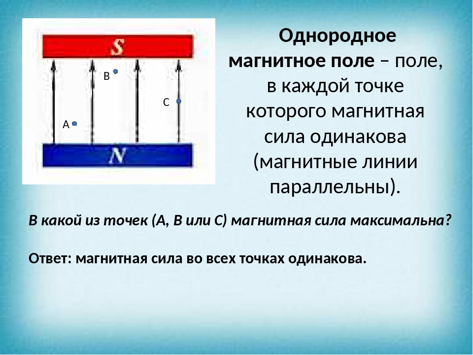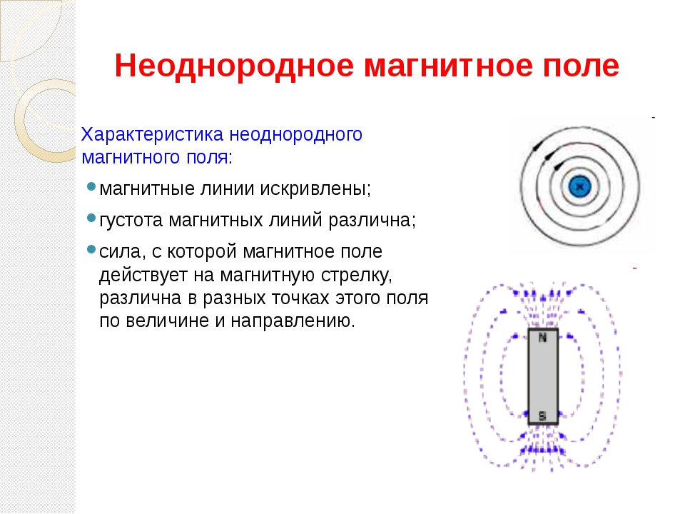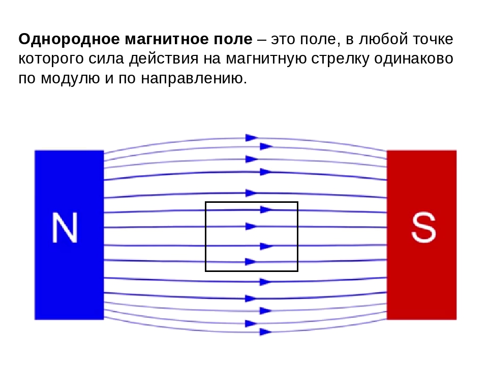 Как и в случае с электрическими зарядами, эффект этой магнитной силы, действующей на расстоянии, выражается в терминах силового поля. Магнитный полюс создает в пространстве вокруг себя поле, которое действует на магнитные материалы. Поле можно представить в виде линий индукции (аналогично силовым линиям электрического поля). Эти воображаемые линии указывают направление поля в данной области. По соглашению они берут начало на северном полюсе магнита и образуют петли, которые заканчиваются на южном полюсе либо того же магнита, либо какого-либо другого соседнего магнита (см. также магнитный поток).Линии расположены так, чтобы их количество на единицу площади было пропорционально напряженности поля в данной области. Таким образом, линии сходятся вблизи полюсов, где сильно поле, и расходятся по мере удаления от полюсов.