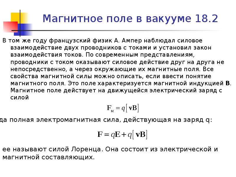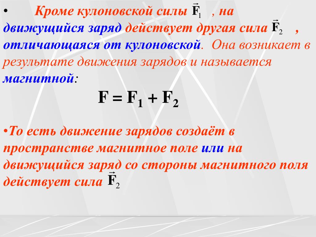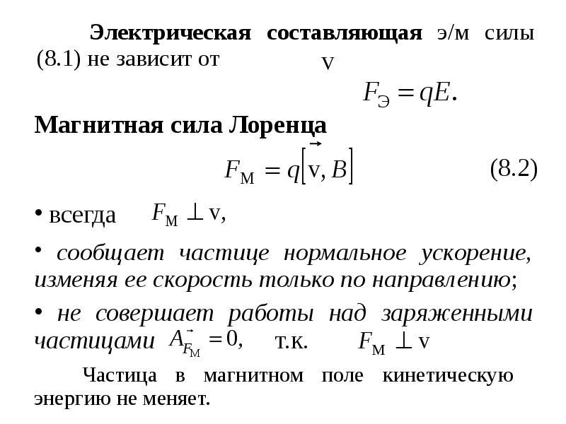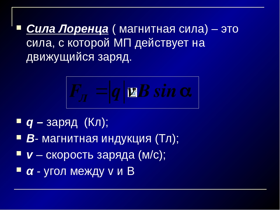 $$\bar{F}=q[\bar{v} \times \bar{B}](1)$$называется силой Лоренца (магнитной силой).