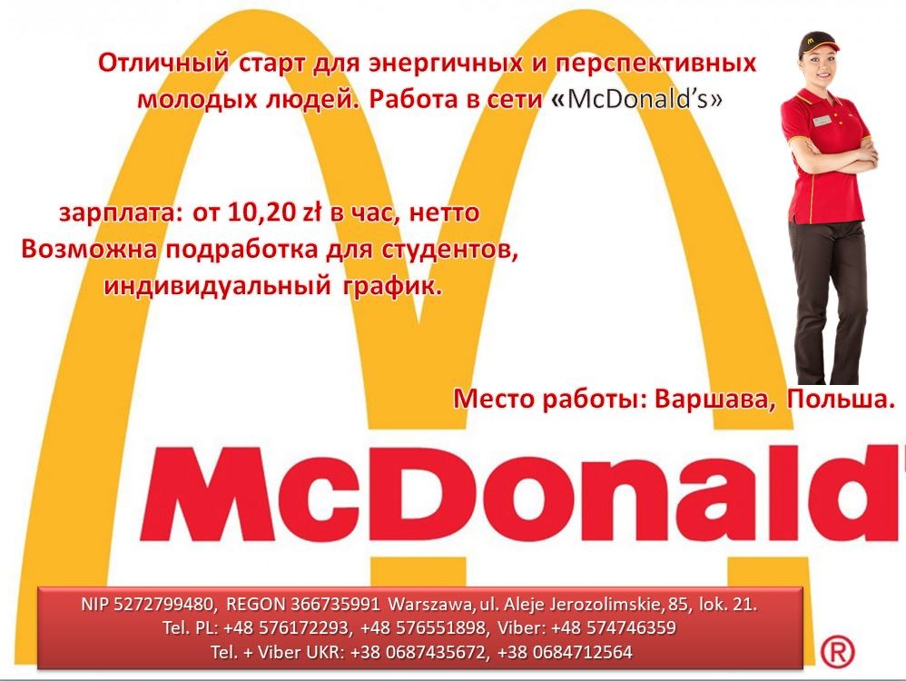 В общем и целом, наши программы льгот предоставляют сотрудникам корпорации McDonald’s ценный и привлекательный пакет услуг. Мы верим, что вы обнаружите, что работая в команде McDonald’s, вы получите массу преимуществ.