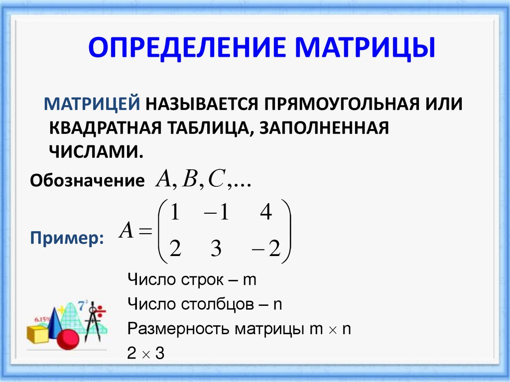 МАТРИЦЕЙ НАЗЫВАЕТСЯ ПРЯМОУГОЛЬНАЯ ИЛИ КВАДРАТНАЯ