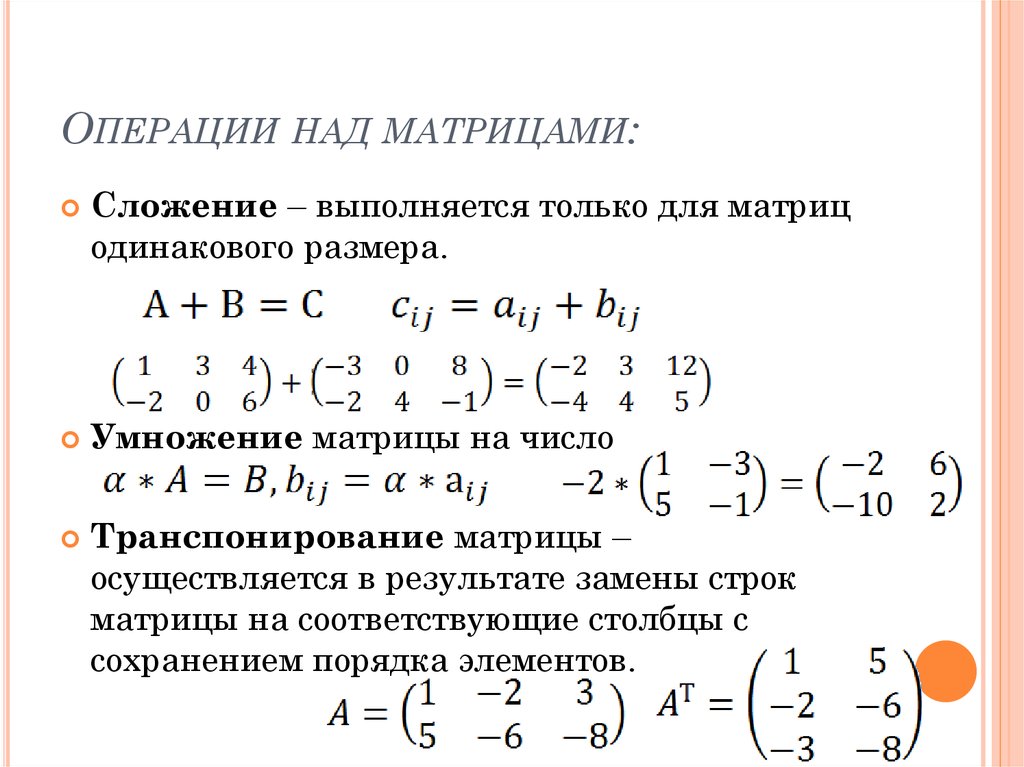 Ма́трица — математический объект, записываемый в виде прямоугольной таблицы чисел (или элементов кольца) и допускающий алгебраические операции (сложение, вычитание, умножение и др.
