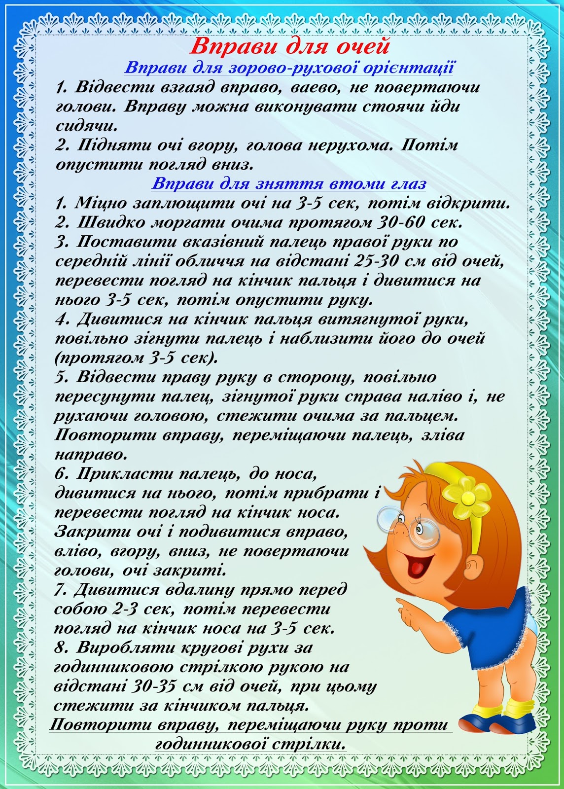 -здійснюю контроль за дотриманням режиму дня, правильним проведенням ранкової гімнастики, фізкультурних занять, прогулянок;