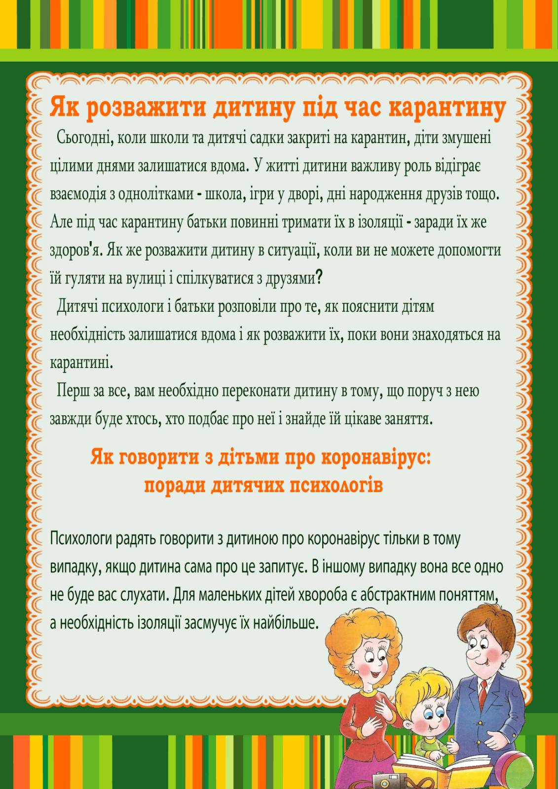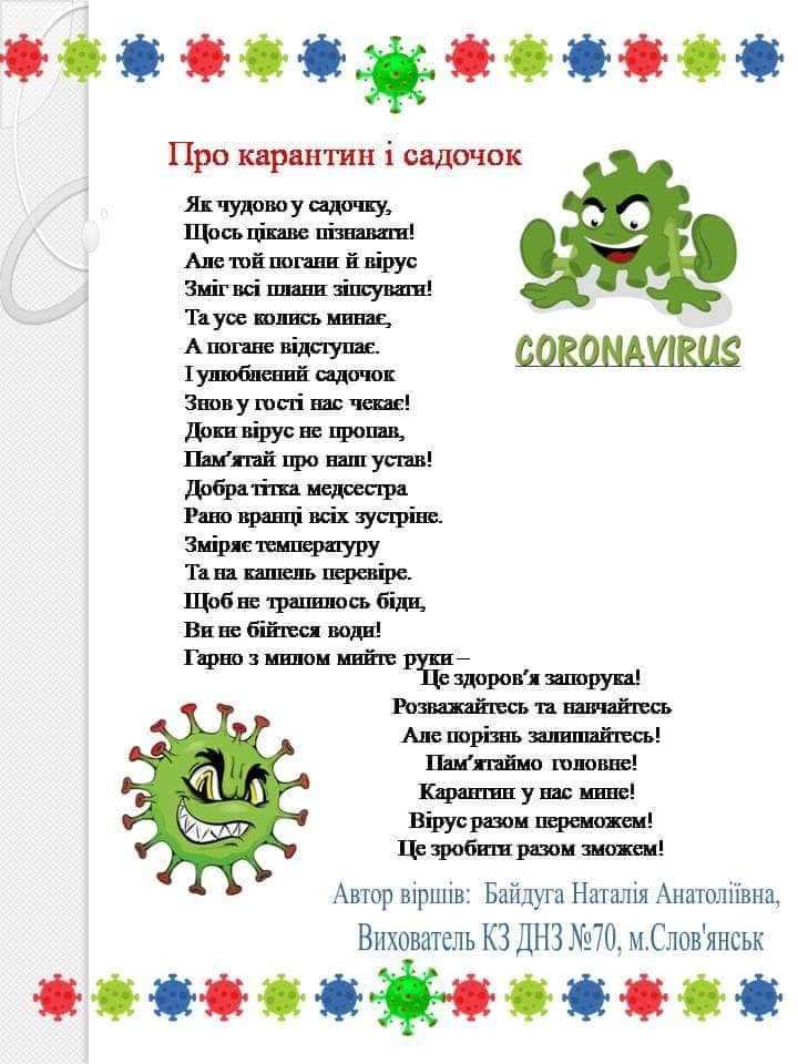 У зв’язку з поширенням короновірусної інфекції у лютому-березні 2020 року, була проведена роз’яснювальна робота з персоналом, батьками та дітьми , щодо профілактики зараження, симптомів хвороби та порядку дій у разі захворювання.