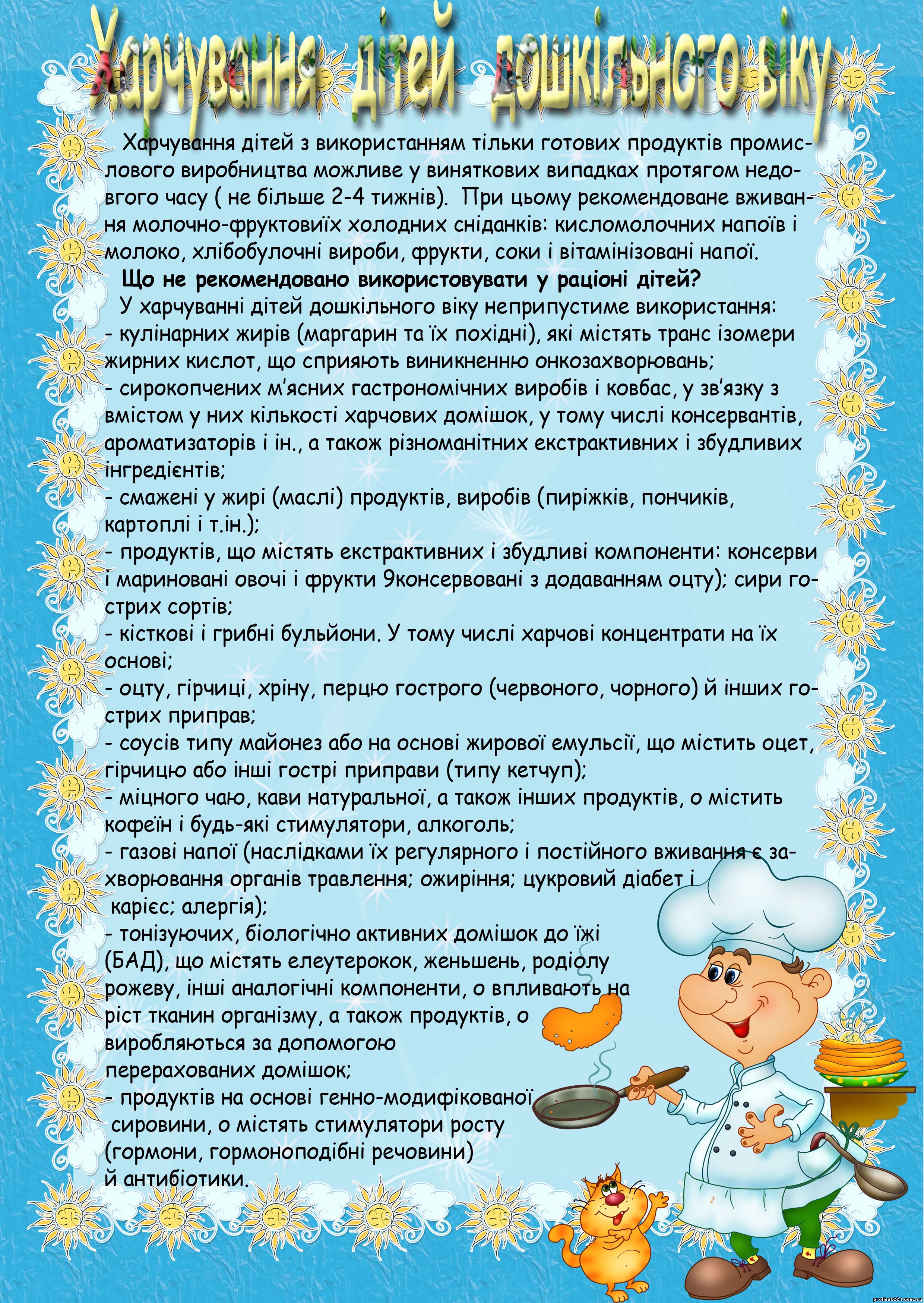 04.2006 №298/227 «Про затвердження інструкції з організації харчування дітей у дошкільних навчальних закладах»;