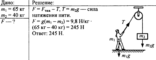 Самый простой ответ — представить, что бы вы почувствовали, если бы перерезали веревку с обеих сторон блока и взяли по одному концу в каждую руку. Ясно, что вы почувствуете, как оба конца веревки тянутся вниз.Следовательно, по третьему закону Ньютона оба конца веревки тянутся к шкиву. В случае безмассового шкива и без трения эти две силы натяжения также должны быть равны, что объясняет, почему они обозначены одинаково. Обратите внимание, что вектор натяжения в блоке также помечен тем же именем переменной. Это потому, что это один и тот же канат , и наше предположение о невесомых шкивах без трения гарантирует, что везде, где мы измеряем натяжение одного куска каната, оно будет одинаковым.