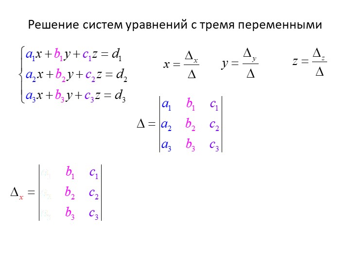 Переходим к рассмотрению правила Крамера для системы трех уравнений с тремя неизвестными: