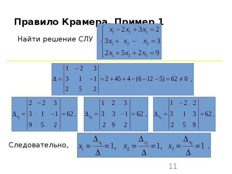 Метод крамера для произвольных систем линейных уравнений. Метод крамера решения систем линейных уравнений