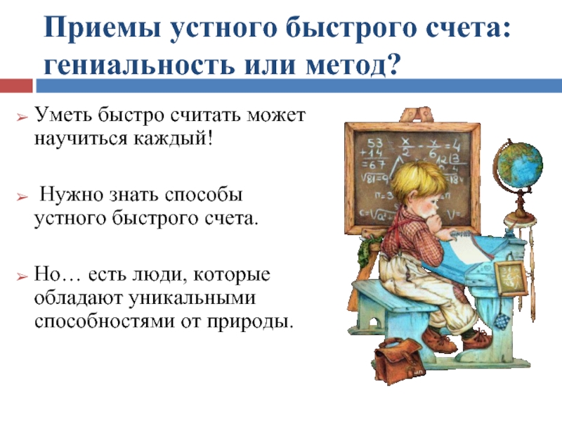 визуализации помогает им в творческих занятиях. - Ментальная арифметика – это на сегодняшний день единственная методика, дающая навык скоростного устного счета.