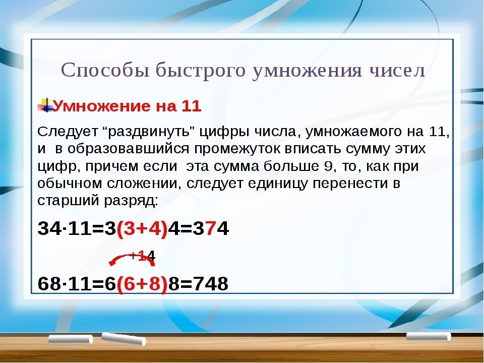 двузначное, умножение на 11, применение формул сокращенного умножения,