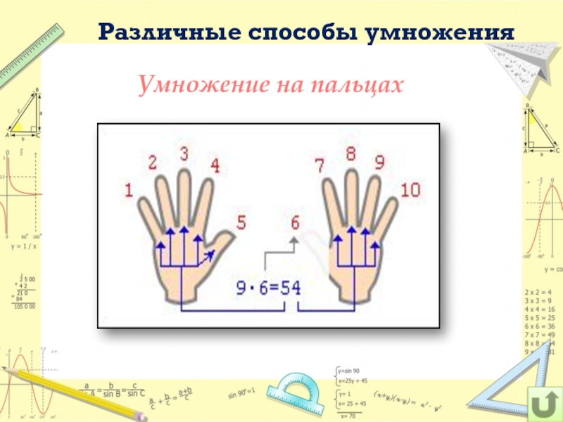 1. Рассмотреть приемы быстрого счета подобранных соответственно для 6, 7, 8 классов;