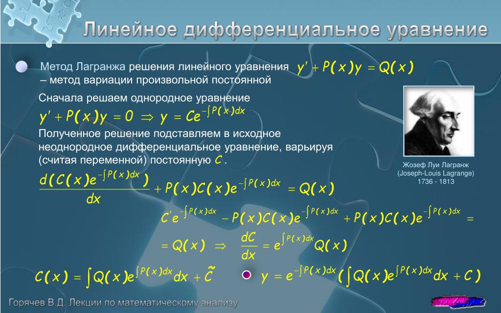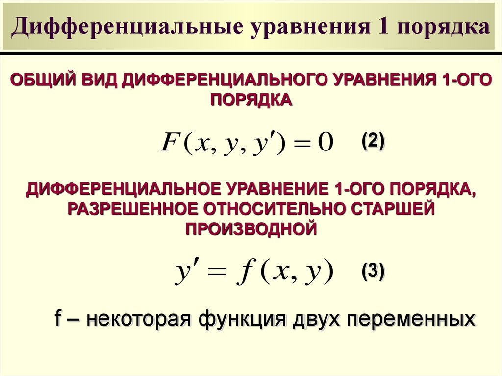Простейшим (линейным) ОДУ является уравнение (1) порядка разрешенное относительно производной