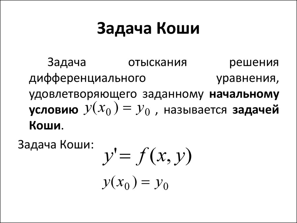 Задача заключается в нахождении функции y, удовлетворяющей равенству (1). Более того, не оговаривая это отдельно, будем предполагать, что искомое решение обладает той или иной степенью гладкости, необходимой для построения и «законного» применения того или иного метода.