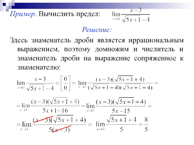 Решение. Используя последовательно свойства 1,3 и 5 предела, получим