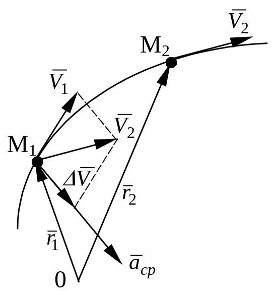 Где \(\Delta\vec V\) — изменение скорости, \(\Delta t\) — промежуток времени, когда происходило изменение скорости.