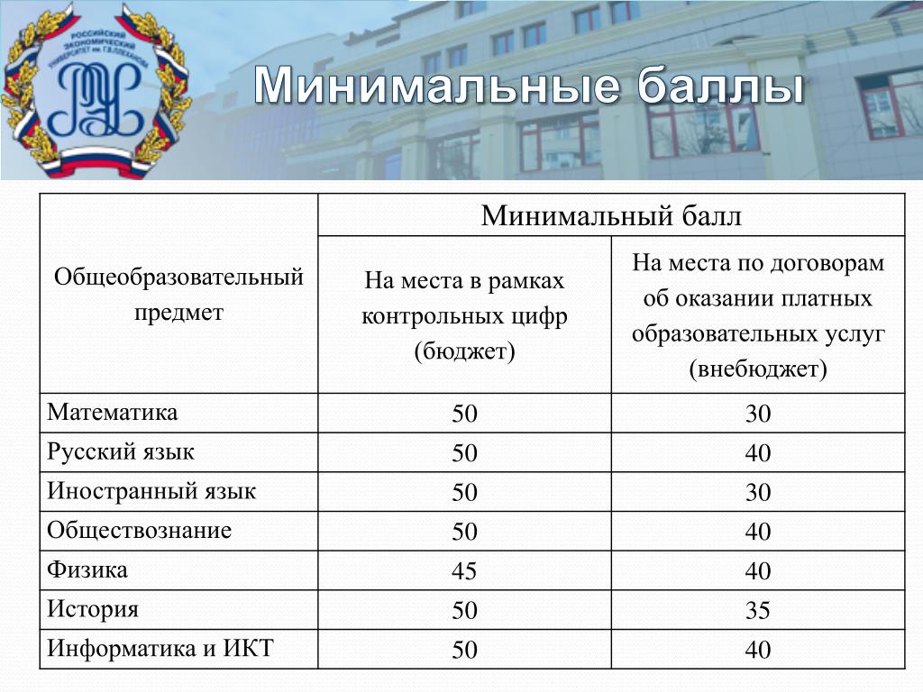 Минимальные баллы вузов