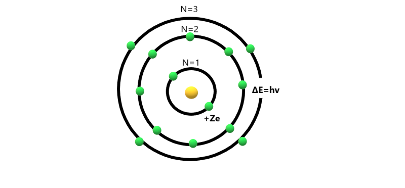 Модель Бора описывает визуальное представление малых электронов, вращающихся вокруг ядра. В нем использовались разные электронные оболочки, такие как K, L, M, N… и так далее. Эти оболочки содержат определенное количество электронов, электронная оболочка, ближайшая к ядру, имеет меньшую энергию, а электронная оболочка, наиболее удаленная от ядра, имеет большую энергию.