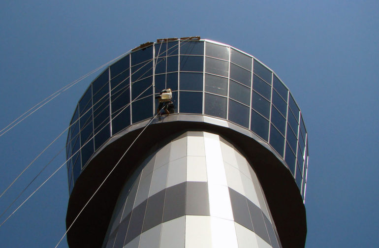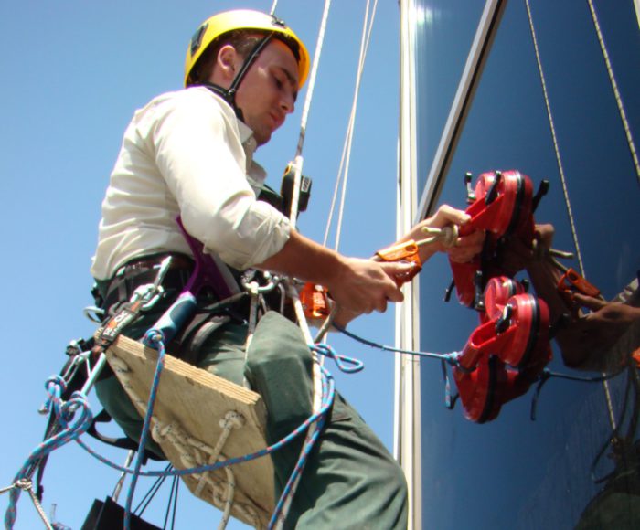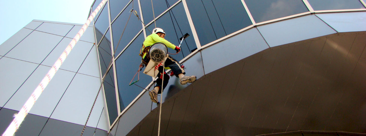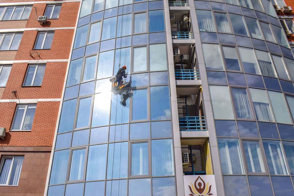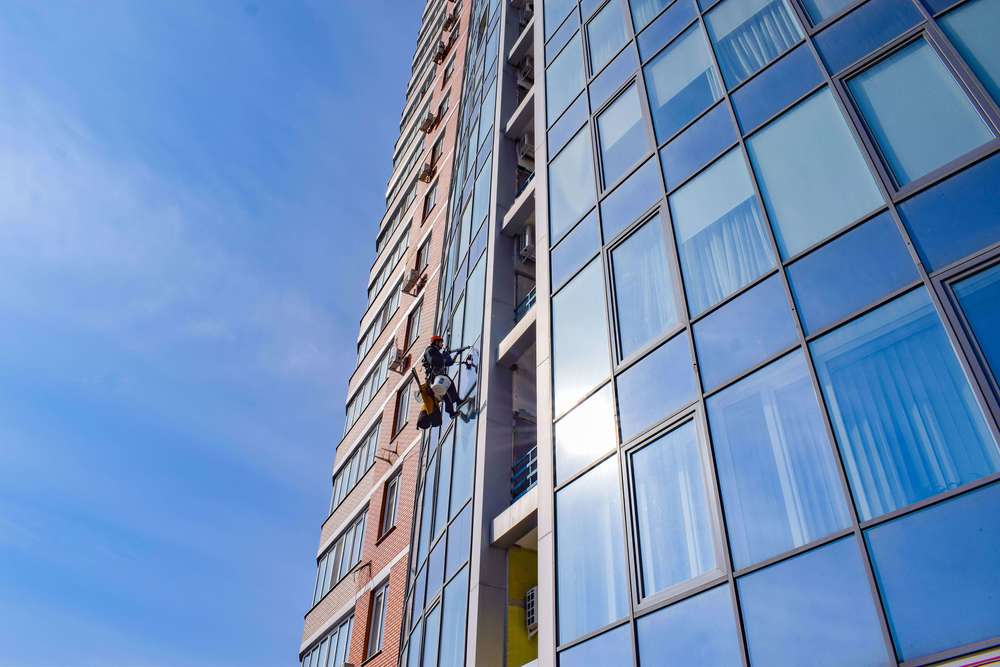Уход за современными стеклянными конструкциями требует особых знаний, особенно когда дело касается высотных работ. В таком случае работы выполняются специалистами с использованием специальной техники.