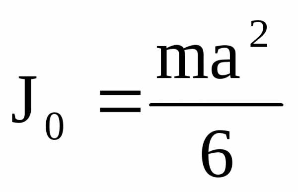 Определим теперь момент инерции $I$. Ясно, что момент инерции куба относительно оси, проходящей через центры противоположных граней, равен по величине моменту инерции тонкой квадратной пластины (масса которой равна массе куба и сторона равна ребру куба) относительно оси, перпендикулярной к плоскости пластины и проходящей через ее середину.