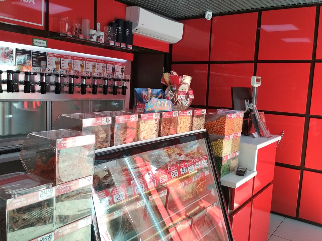 В МОРЕ ПИВА представлены более 30 сортов разливного пива из Украины и Европы, сорта собственных торговых марок «Кошерное Пшеничное» и «Берлингер Лагер», сваренные по немецким технологиям, бутылочное пиво, безалкогольные напитки и свыше 100 видов закусок.